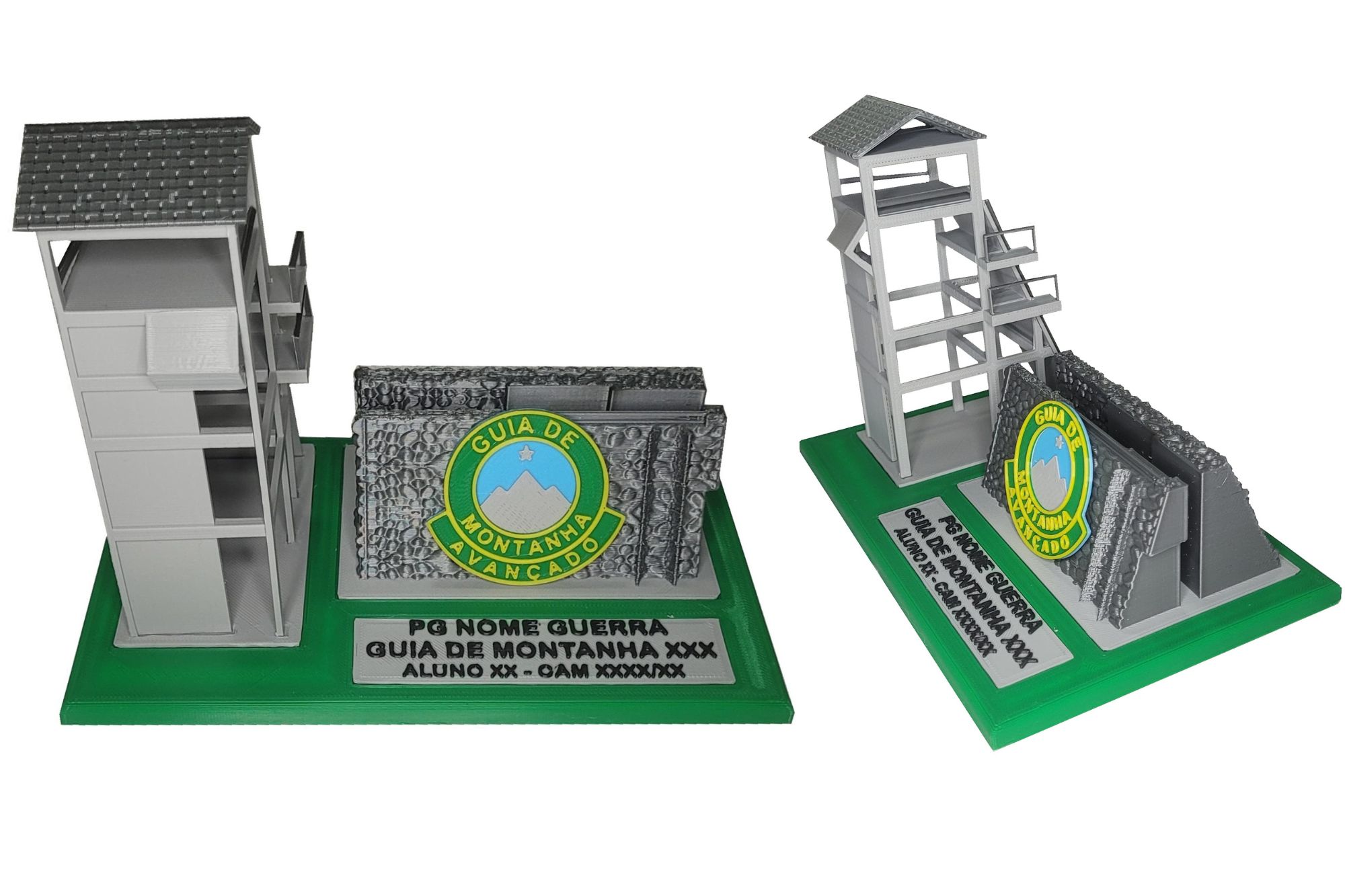 Réplica em escala e personalizada da Pista de Treinamento de Montanhismo (Mangrulho) do 11º Batalhão de Infantaria de Montanha, ostentando o brevê de seu curso ou estágio de montanha. Cada peça é cuidadosamente projetada e confeccionada com tecnologia de impressão em 3D em PLA, proporcionando riqueza de detalhes e exclusividade.
